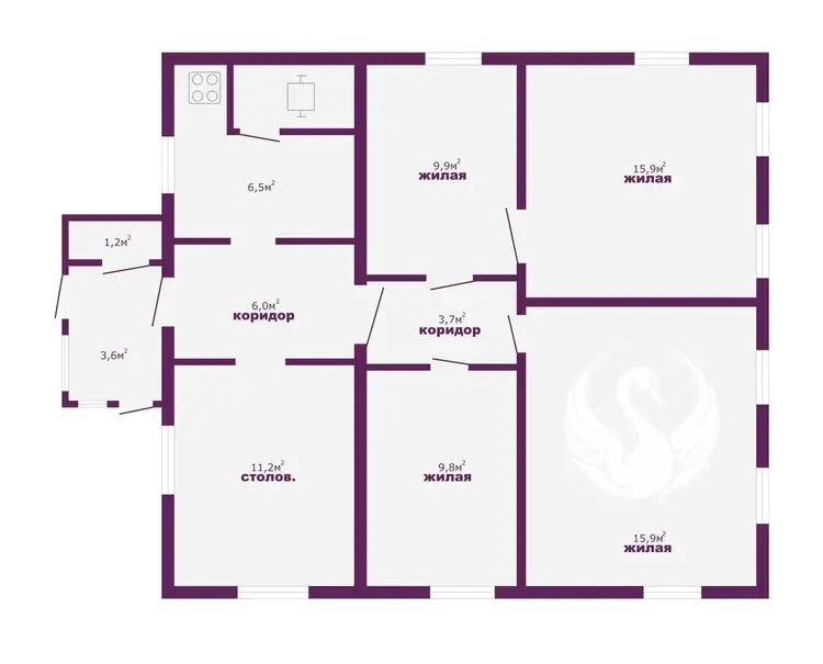 -Общая площадь дома составляет 83,7 кв.м. Жилая площадь - 54,1 кв.м, кухня - 6,5 кв..м. Простая планировка подойдёт как для дачи, так и для постоянного проживания.