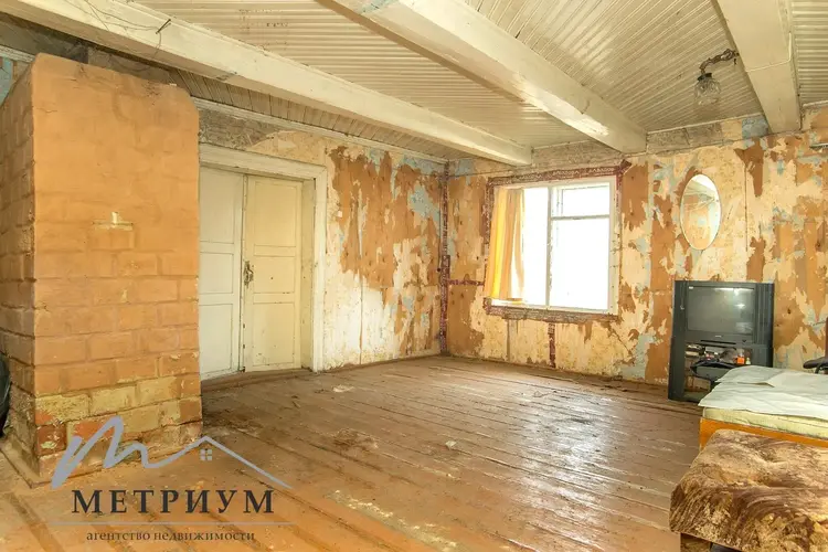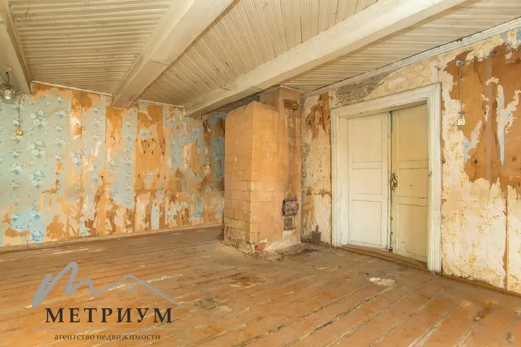 Одноуровневый бревенчатый дом (39 м2 общей площади), под крышей из шифера. Дом в отлично подойдёт для временного проживания или как база на время строительства нового дома.