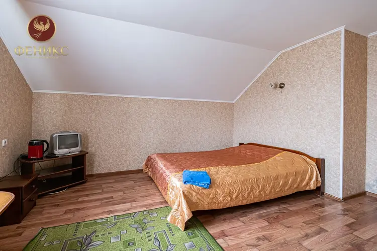 - Гостиничный комплекс включает в себя 9 номеров, комнату для отдыха, бассейн и прачечную.