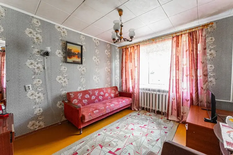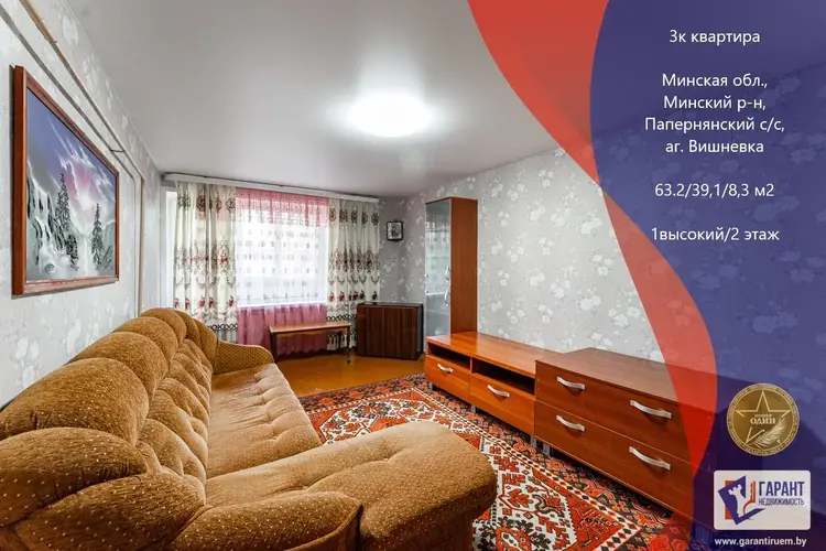 Квартира расположена на 1-ом этаже 2-этажного кирпичного дома 1980 года. Три изолированные комнаты 16,9м., 11,5м. и 10,7м., кухня 8,3м., раздельный санузел, большая застекленная лоджия. Есть подвал.