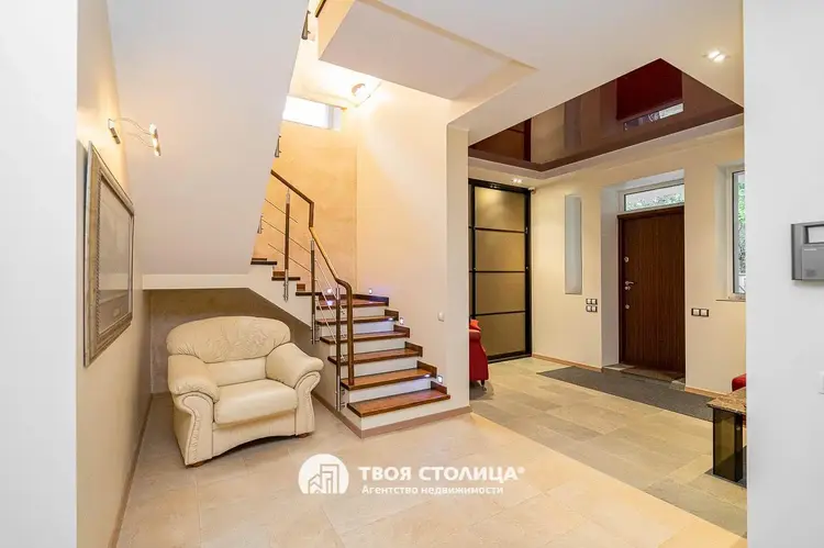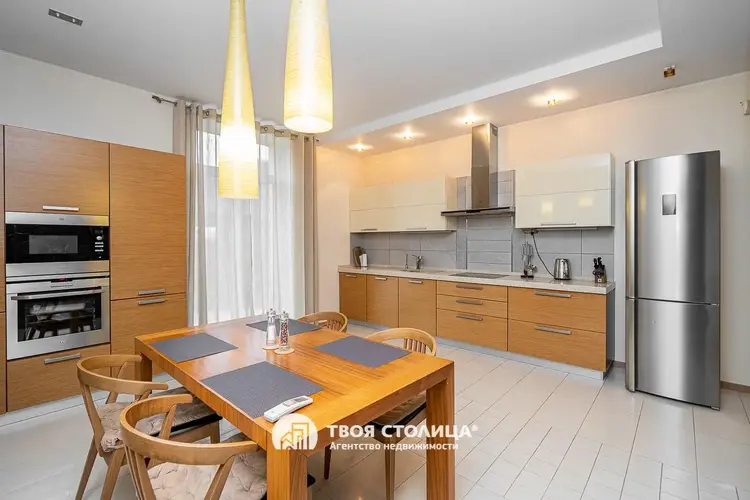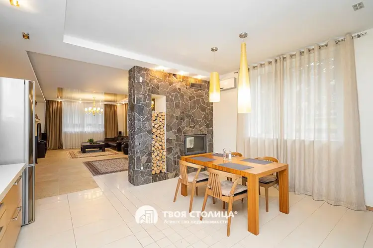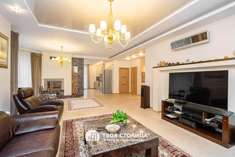 ПРОДАЕТСЯ СОВРЕМЕННЫЙ КОТТЕДЖ У ЛЕСА В ЭЛИТНОМ С/Т КУНЦЕВЩИНА — 4,8 КМ ОТ МИНСКА!Дом, где начинается уютПредставьте себе: всего 8 минут от МКАД — и вы в другом мире. В с/т «Кунцевщина», окружённом лесом, где воздух свежий, а тишина настоящая. Закрытая территория, шлагбаум на въезде, видеонаблюдение — всё для вашей безопасности и спокойствия. А рядом — магазины, аптеки, салон красоты, всё, что нужно для комфортной жизни.Технические характеристики дома:Год постройки: 2009Общая площадь дома: 238,8 м²Количество уровней: 2Кровля: гибкая черепица KatepalФундамент: бетонСтены: блочные Перекрытия: ж/б плитыЭлектроснабжение: 220 ВтГазоснабжение: центральноеОтопление: на газу, двухконтурный котёлКанализация: местная, переливнаяВодоснабжение: круглогодичное + собственная скважина, очистка водыИнтернет: есть + спутниковое телевидение НТВ плюсКоличество комнат: 5 + (16,8 м², 22,4 м², 22,3 м², 16,8 м², 19,7 м²)Кухня: 22,5 м²Высота потолков: 2,90 м (1 этаж), 2,86 м (2 этаж)Простор, стиль и теплоКоттедж площадью 238,8 м² — это не просто дом, это пространство, где каждая деталь продумана для вашего комфорта. Высокие потолки, французские окна, свет, который наполняет комнаты с утра до вечера.Стиль и дизайн интерьераИнтерьер дома выполнен в элегантном стиле современной классики с элементами эклектики. Просторные комнаты сочетают кожаную мебель, камин из натурального камня и изысканные люстры с современными решениями — зеркальными шкафами, встроенным освещением и открытой планировкой. Это гармоничное пространство, где комфорт сочетается с утонченным вкусом.Кухня — просторная, светлая, с панорамными окнами и выходом к беседке с барбекю. Оснащена современной техникой Electrolux AEG, включая духовой шкаф, СВЧ, варочную панель, посудомоечную машину, вытяжку и холодильник. Это кухня, которая удовлетворит запросы даже самой требовательной хозяйки — функциональная, стильная и вдохновляющая на кулинарные шедевры.А камин, расположенный между кухней и гостиной, создаёт атмосферу уюта и объединяет пространство. Вечерами он становится сердцем дома — мягкий свет пламени, аромат дерева, тепло, которое обволакивает и дарит ощущение настоящего домашнего счастья.Кинотеатр домаВ гостиной — мощная аудиосистема и большой телевизор, которые погрузят Вас в мир кино с эффектом полного присутствия. Здесь можно по-настоящему расслабиться, насладиться фильмом и забыть о суете.Комфорт круглый годКондиционеры в комнатах, кухне и гостиной обеспечивают идеальную температуру в любое время года. А тёплые полы по всему дому — это забота, которую чувствуешь с каждым шагом. Ходить босиком приятно даже в мороз.Второй этаж — личное пространствоЧетыре отдельные комнаты с выходом на балконы, два санузла, один из которых — с видом на лес. Представьте: вы принимаете ванну с эфирными маслами и любуетесь лесным массивом. Это не просто отдых — это наслаждение каждым мгновением.Участок, где хочется житьПлощадь участка — 0,0617 га, обнесён стильным забором с освещением по периметру. Вечером всё вокруг преображается — свет, тени, уют. Высажены декоративные растения, включая клен гиннала с ярко-красной листвой осенью — просто сказка. Есть система полива, чтобы всё всегда было зелёным и живым.Банный комплекс — отдых для душиБаня с каменкой Harvia, купелью и душевой — это место, где тело отдыхает, а мысли успокаиваются. Горячи