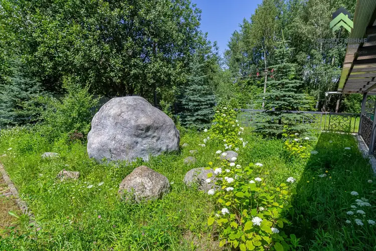Участок 15 соток в частной собственности, правильной формы, ровный, по периметру огорожен надежным забором, что обеспечивает приватность и безопасность. На участке выполнен профессиональный ландшафтный дизайн с использованием хвойных насаждений, плодовых деревьев и кустарников. Созданы живописные альпийские горки, дорожки выложены тротуарной плиткой. Есть зона барбекю 6*6, качели.