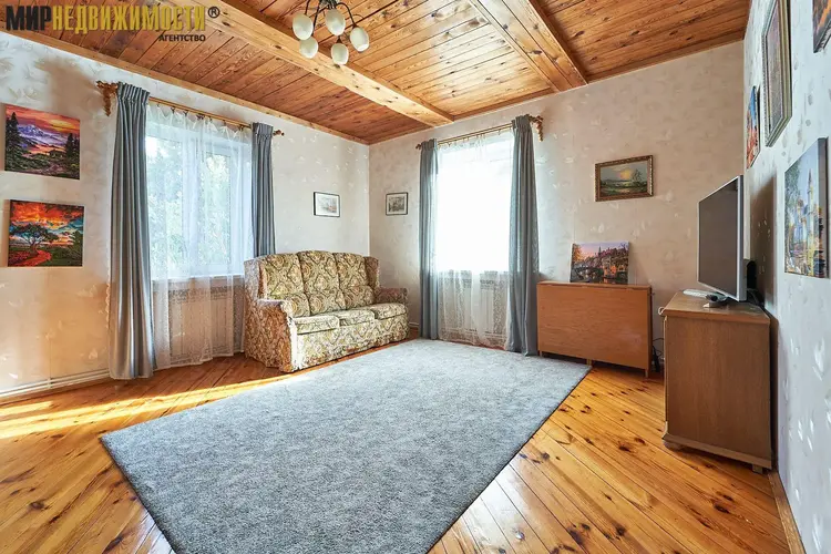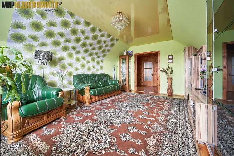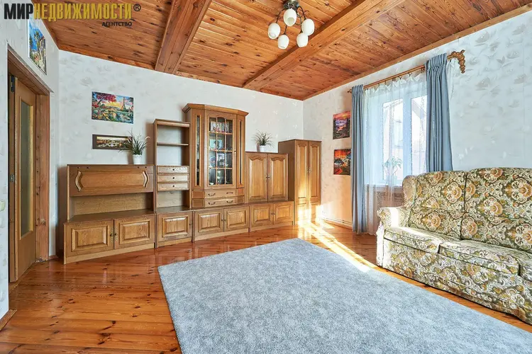 Дом просторный и светлый, состоит из 6 жилых комнат, кухня 11,8 м2, совмещенный санузел, камин в гостинной.