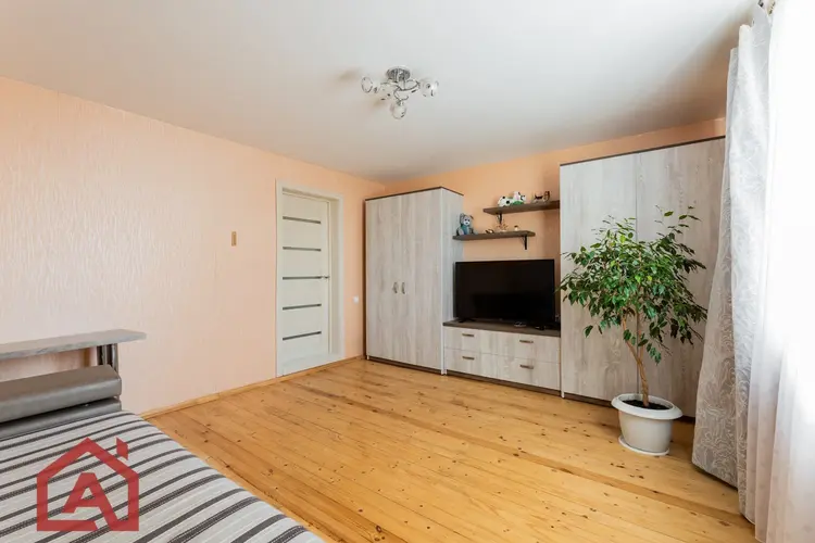 В комнатах и на кухне полы деревянные, в коридоре и прихожей стяжка + линолеум.