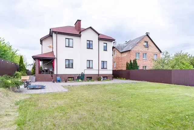 Дом расположен в коттеджной застройке рядом с Минском, 3 минуты от кольцевой, рядом гипермаркет Корона, остановка общественного транспорта, школа, детский сад. В пешей доступности находится Минское море и лесная зона.