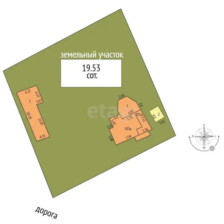 Участок 20 соток, правильной формы, выполнен ландшафтный дизайн: (выложены дорожки, газонная трава, декоративные насаждения, плодовые деревья и ягоды, зонированный автополив)