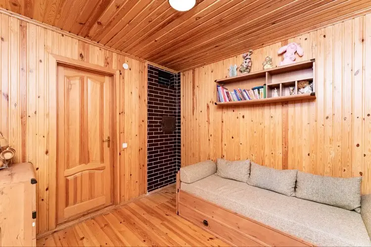 • Просторно, светло и тепло: высокие потолки 2.67м и большие качественные деревянные окна наполняют дом светом. Стены – дерево, обложенное кирпичом