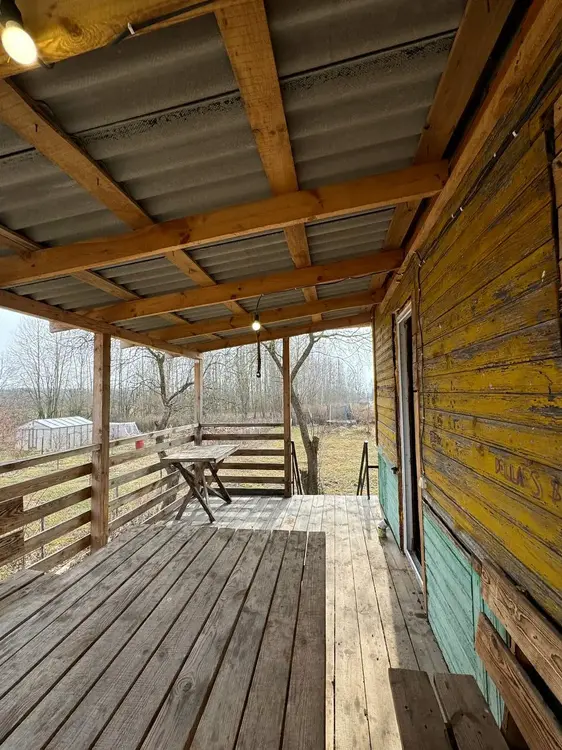 * Отопление: летом не требуется, зимой возможно подключение печи (есть вывод в трубу бани)