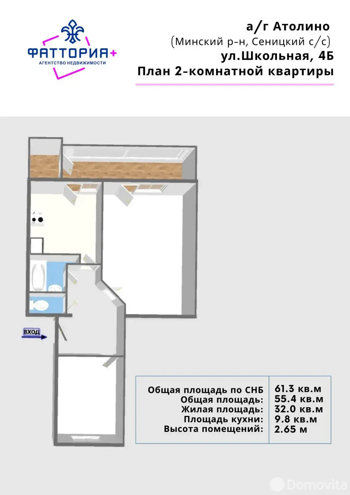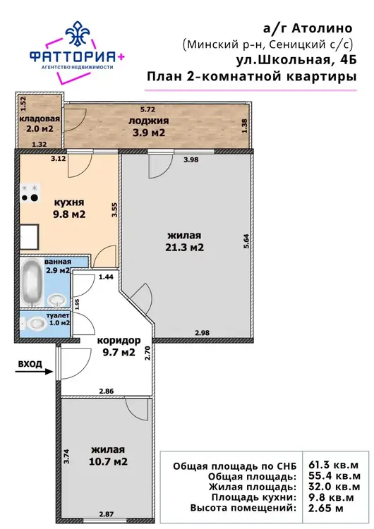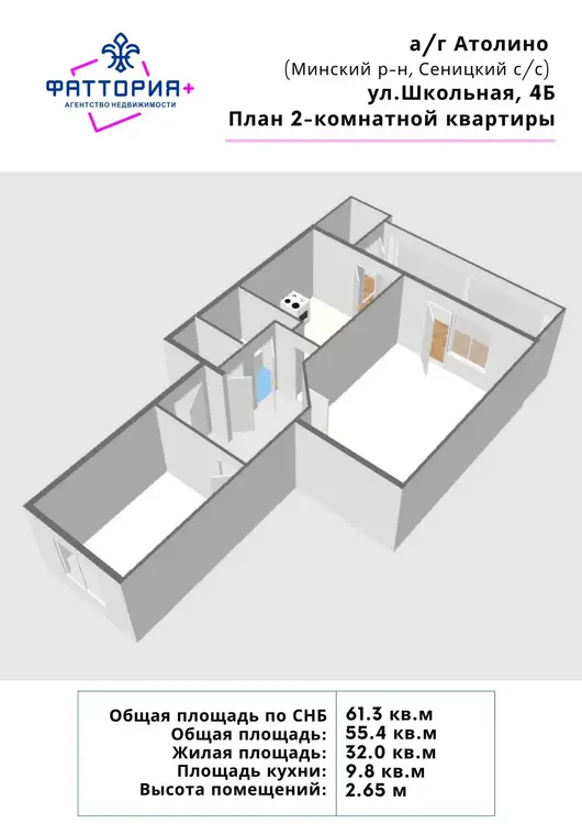 В продаже 2- комнатная квартира в агрогородке Атолино.