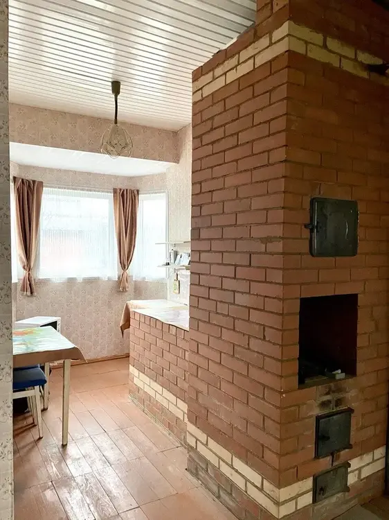 Дом деревянный, обложен кирпичом, готов к проживанию. Два жилых этажа. Газ доведен до границы участка. Электричество, вода и канализация введены в дом. Отопление печное. В доме установлены санузел и душевая кабина, бойлер для подогрева воды.