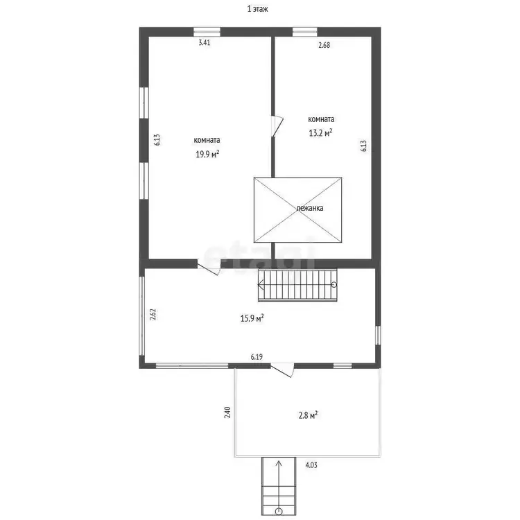 - Гостиная 19.6 м.кв с кухонным гарнитуром и камином, санузел с душевой кабиной.