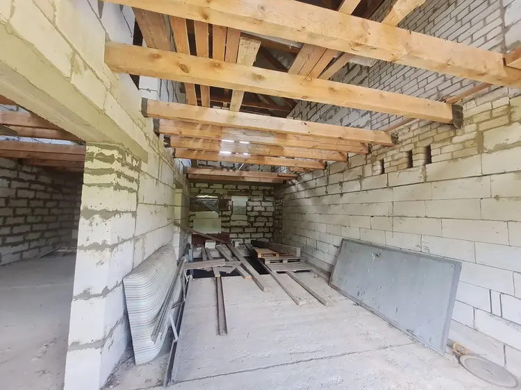 Стены из блоков, фундамент - монолит, перегородки - блок, железобетонные плиты перекрытия, кровля – металлочерепица. Общая площадь здания 175,9 кв.м.