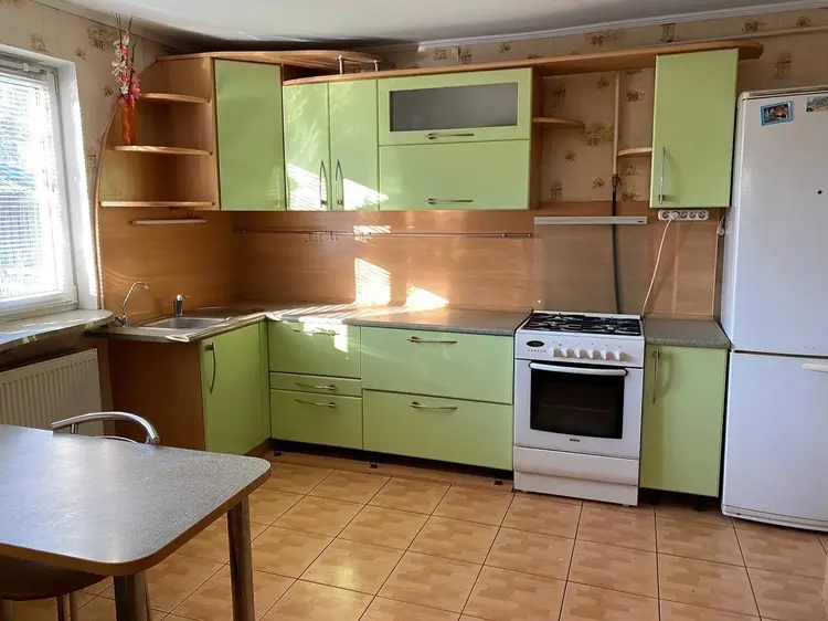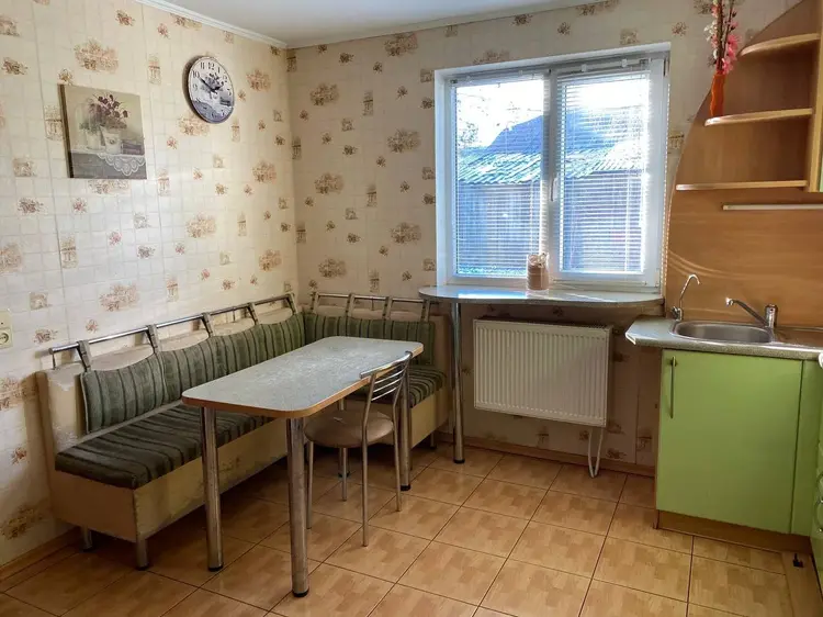 Общая площадь - 74 кв.м, жилая - 43 кв.м, кухня -13.3 кв.м. Дом деревянный, обложен кирпичом, в 2006 году произведена реконструкция с увеличением площади. 4 комнаты, две изолированные и две проходные. Окна ПВХ с качественной фурнитурой, межкомнатные двери из массива. Санузел раздельный, облицован плиткой. Просторная топочная с вместительным шкафом. Имеются все коммуникации. Водопровод и канализация центральные, газовая система отопления.