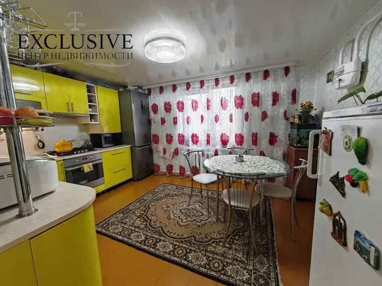 Общая площадь - 74 кв.м, жилая - 43 кв.м, кухня -13.3 кв.м. Дом деревянный, обложен кирпичом, в 2006 году произведена реконструкция с увеличением площади. 4 комнаты, две изолированные и две проходные. Окна ПВХ с качественной фурнитурой, межкомнатные двери из массива. Санузел раздельный, облицован плиткой. Просторная топочная с вместительным шкафом. Имеются все коммуникации. Водопровод и канализация центральные, газовая система отопления.