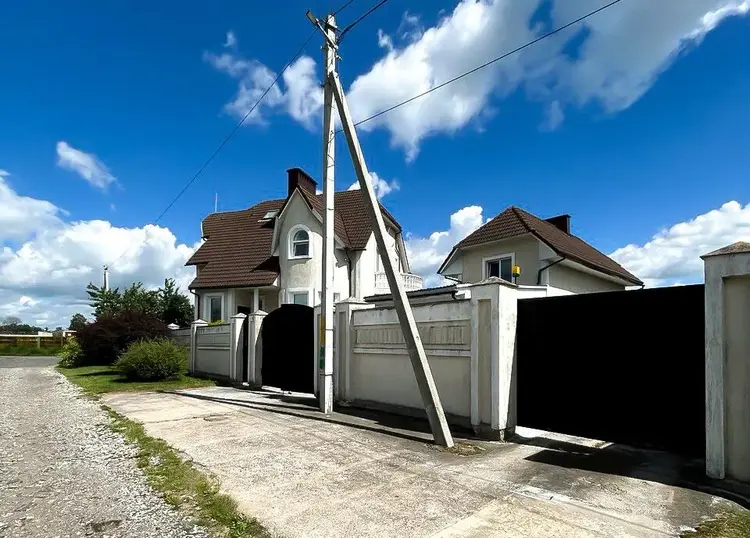 - Крыша - черепица, забор железобетонный с металлическими воротами на пульте управления.