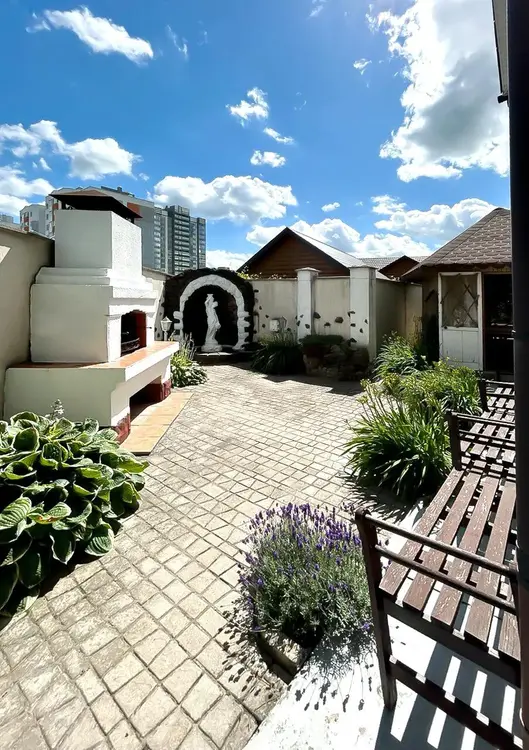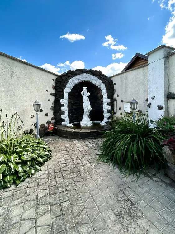 - На участке расположен большой гараж в три уровня ,второй этаж используется как спортзал и цокольный этаж, в котором все оборудовано для хранения консерваций. Беседка закрытого типа, зоны отдыха, свой действующий фонтан, две зоны барбекю, огород под овощи, ягоды.