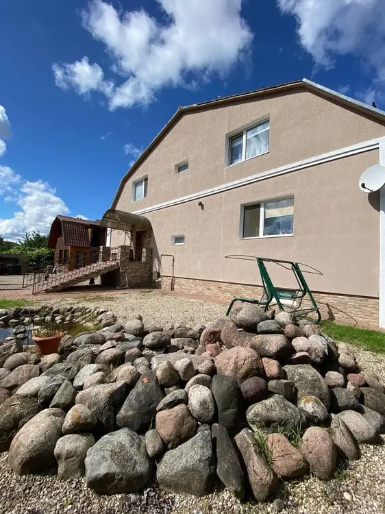 Продаётся элитный коттедж для комфортной жизни. Коттедж находится в г.Барановичи по ул.Спокойная 21В. Данный объект недвижимости не требует никаких денежных вложений, так как дом и его отделка выполнены из качественных материалов и полностью готов для проживания. Год постройки 1997. Год реконструкции 2023 г. Колличество надземныз этажей - 2, колличество подземных этажей - 1. Общая площадь здания - 506,6 кв.м., общая площадь жилых помещений - 484,2 кв.м., жилая площадь - 221,8 кв.м. Имеется 1 балкон площадью - 6,6 кв.м. На первом этаже находится: жилая комната - 59,2 кв.м., прихожая - 18,3 кв.м., два коридора площадью - 9,3 кв.м. и 23,3 кв.м., кухня - 43,0 кв.м., ванная комната - 9,8 кв.м., туалет - 7,3 кв.м. На втором этаже находится: три жилые комнаты площадью - 23,5 кв.м., 27,4 кв.м., 72,5 кв.м.. один коридор - 16,2 кв.м., санузел - 5,0 кв.м., балкон - 6,6 кв.м. Есть возможность завершить установку электросауны с бассейном на цокольном этаже. На этаже подвальном находится: гараж - 20,4 кв.м., топочная - 19,5 кв.м., два коридора площадью - 17,3 кв.м. и 13,2 кв.м., холл - 39,0 кв.м., бильярдная - 39,2 кв.м., сауна - 8,6 кв.м., бассейн - 15,9 кв.м., кладовая - 12,8 кв.м., два туалета площадью - 2,3 кв.м. и 1,6 кв.м. Все перекрытия в доме из железобетона. Перегородки кирпичные. Окна - ПВХ. Крыша - металлочерепица. Отопление - камин, газовый котел. Центральный Водопровод, канализация. электроснабжение, газоснабжение - центральные. На территории жилого дома имеется брусчатая баня площадью - 43,0 кв.м. с отделкой из натурального камня. К бане сделана кирпичная пристройка площадью - 21.0 кв.м. Имеется русская печь и зона барбекю в остеклённом предбаннике. Также имеется кирпичный сарай площадью - 14,0 кв.м. Коттедж расположен на большом благоустроенном земельном участке площадью 0,0966 га. Участок облагорожен. На земельном участке также имеются вольер для собаки, курятник, небольшой пруд с декоративным оформлением. Жилой дом продается частично с мебелью и встроенной техникой. Все соседи приличные и добрые люди. Данный объект недвижимости продуман до мелочей и создан для жизни в роскоши и повышенном комфорте. Этот дом является примером хорошего вкуса и стиля. Построен из высококачественных натуральных материалов с соблюдением всех инженерно-строительных и архитектурных норм. Внимание! Возможна покупка в кредит. Предоставляется квалифицированная консультация и помощь с выбором кредита, который будет полностью соответствовать Вашим требованиям, ожиданиям и финансовым возможностям. Кредит возможен без поручителей и независимой оценки. Возможен разумный торг. Ждём Вас на просмотр!
