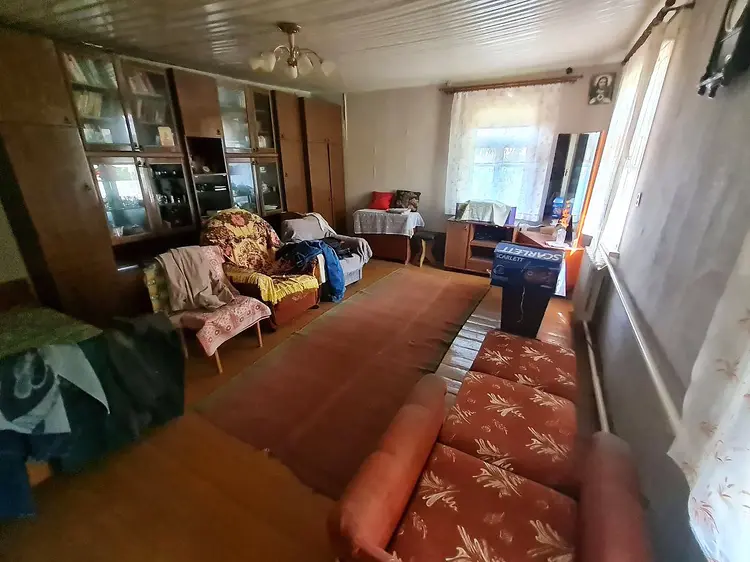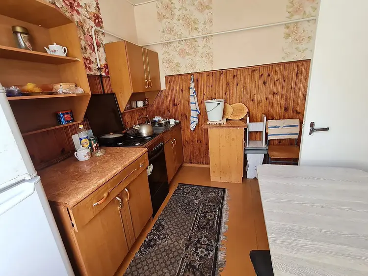 Общая площадь квартиры – 58,9 кв.м, жилая - 38,4 кв.м, кухня - 8,6 кв.м. В квартире имеются все коммуникации. Канализация местная, санузел в доме организован. Вода – скважина. Газоснабжение центральное. Отопление газовое. Установлен газовый котел, бойлер для подогрева воды. Жилые комнаты непроходные. Благодаря большим размерам жилой комнаты, имеется возможность зонировать ее на две. Есть погреб.