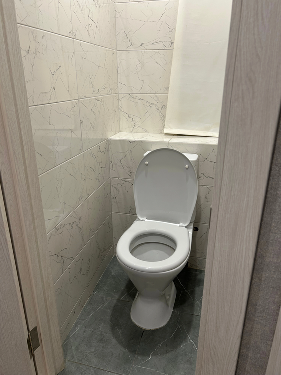 •Ванная и туалет облицованы плиткой. Новая сантехника( душевая кабинка, навесной умывальник, туалет ).