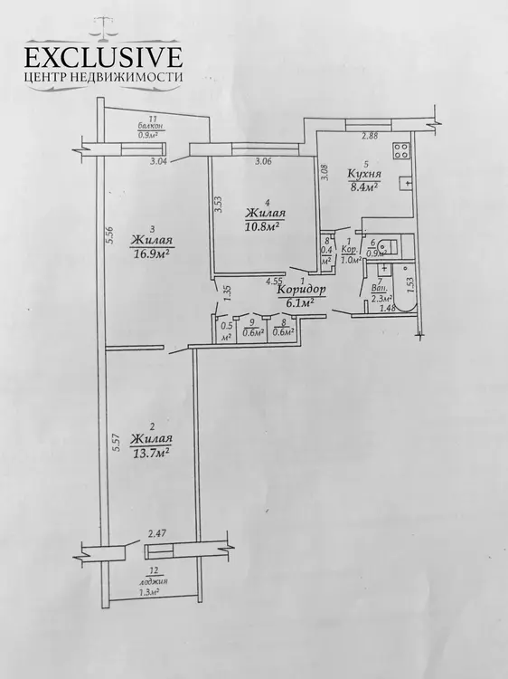 Просторная 3-х комнатная квартира в Южном микрорайоне - шанс создать дом по своему вкусу!