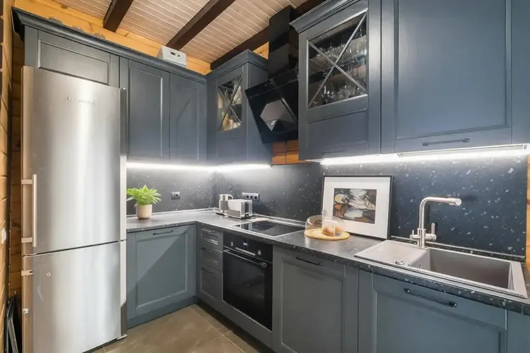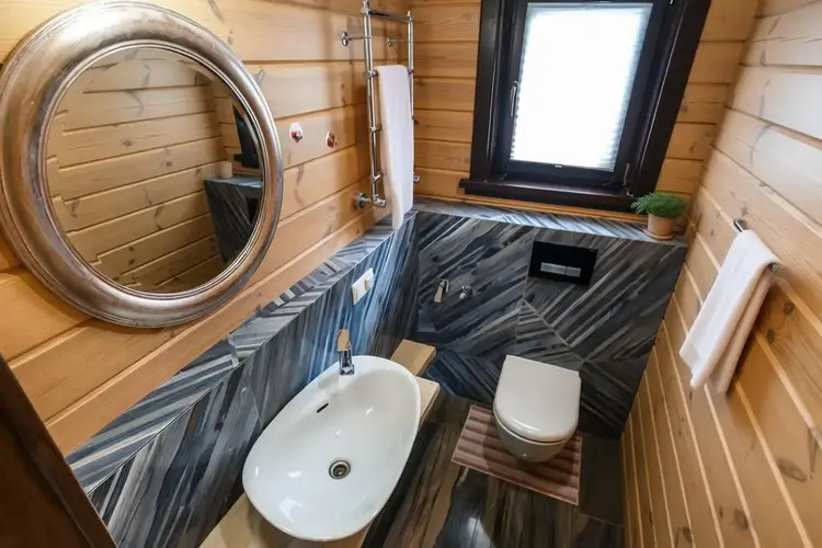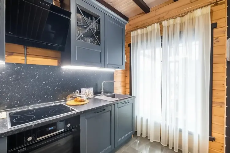 Просторная кухня гостиная, два санузла, душевая, комната отдыха с камином, русская баня, а также запроектирована купель. На полу выложена плитка (Италия), паркет (Германия), тёплый пол, стены окрашены виниловые краской, установлены двери и перегородки (Италия). На мансардном этаже жилая комната 43 кв.м. с гардеробной комнатой. Стильная технология «второй свет» визуально увеличивает площадь, делает пространство «воздушным» и позволяет экономить на электроэнергии за счет большого количества естественного освещения. Пол - паркет, стены - виниловые окраска.
