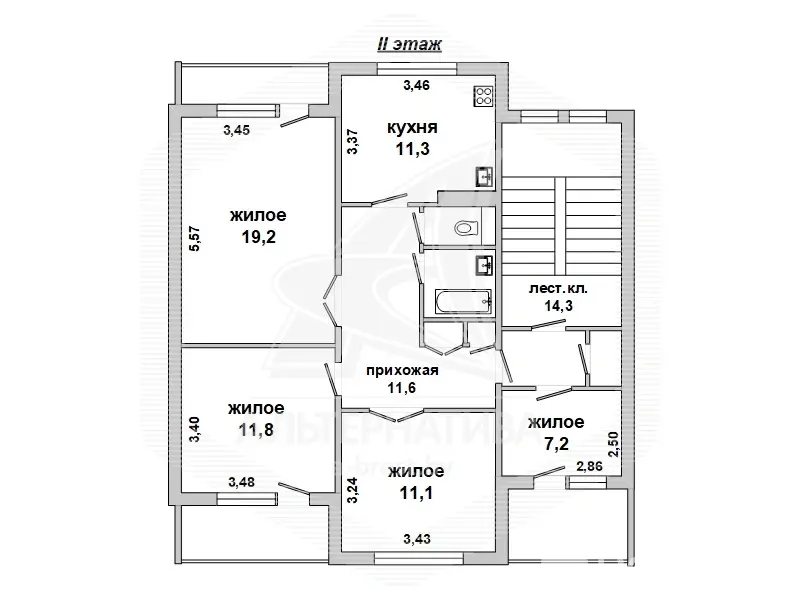 Квартира в блокированном жилом доме в Брестском р-не. 1986 г.п. 2 этажа. Общ.СНБ - 158,4 кв.м, общ.- 104,3 кв.м, жил.- 49,3 кв.м, кух.- 11,3 кв.м. 4 комнаты, высота потолка - 2,60 м.