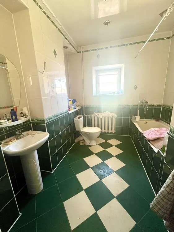 Жилой дом 2003 года постройки, общей площадью 365,9 кв.м, жилая – 139,7 кв.м., кухня – 21,1 кв.м. Материал стен - блок + утеплитель+ оштукатурены. Фундамент – монолит. Крыша – металлопрофиль. В цокольном этаже расположена баня с необходимым оборудованием и душевой комнатой. Так же в цокольном этаже расположена мастерская (35.1 кв.м.), прачечная комната(12,9 м2) с котельной а так же два подсобных помещения (12,8 м2 и 18,5 м2). Все межэтажные перекрытия бетонные, утеплены. На 1-ом этаже расположены две просторные жилые комнаты с выходом на веранду и просторная кухня, санузел. На кухне установлена действующая печь. На 2-ом этаже расположены 3 жилые комнаты, просторный холл и санузел. Все коммуникации центральные, разведены по дому. Для отопления предусмотрен газовый котёл, дополнительно установлен электрический бойлер. В доме частично сделан ремонт. Установлены пластиковые стеклопакеты, в большинстве жилых комнат уложен деревянный пол, сделаны потолки из гипсокартона, на стенах – обои. Санузлы облицованы плиткой. Отличная возможность чтобы завершить ремонт по своему вкусу! Есть большой остаток стройматериалов. К дому пристроен гараж со смотровой ямой и погребом и высокими въездными воротами.