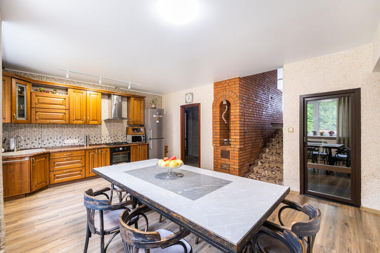 Выход на крытую террасу (36м2) с прекрасным видом на лес. Есть возможность, при необходимости расширения жилплощади, благоустроить большой мансардный этаж площадью более 40м2.