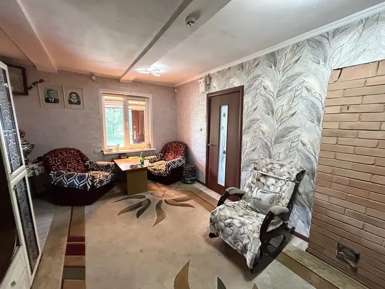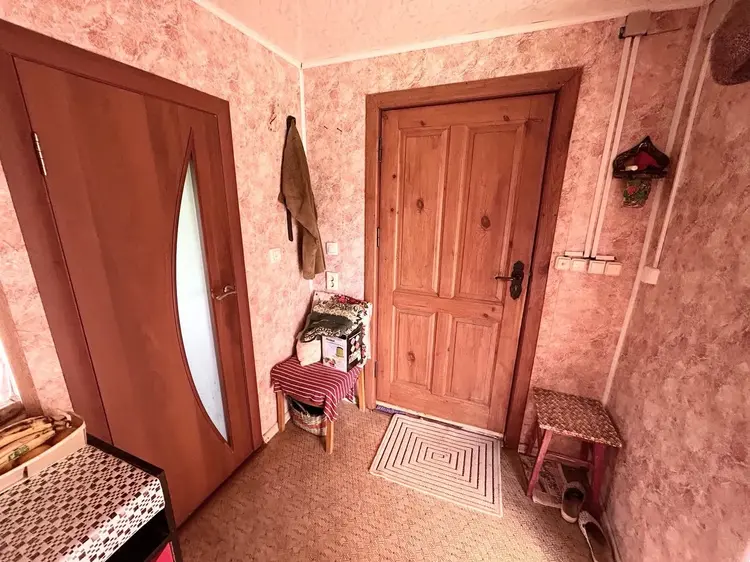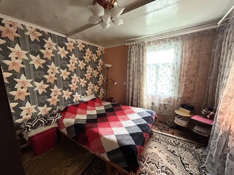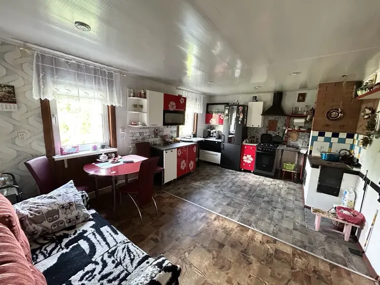 В доме расположена кухня с газовой плитой и плитой на дровах, гостиная, две жилые комнаты, совмещенный санузел. Полы – линолеум/ламинат. Потолки – сайдинг/окрашены.