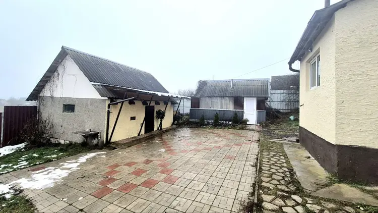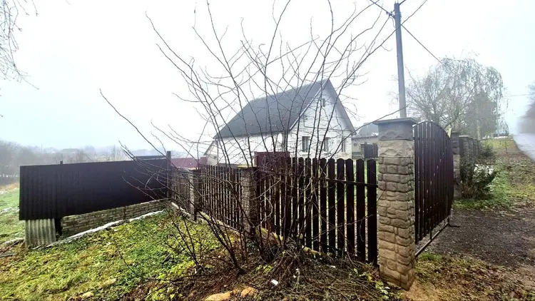 Аккуратный двор выложен тротуарной плиткой и огорожен, здесь же посажены декоративные туи, радующие глаз. За участком в 25 соток открывается великолепный вид на природу и живописный пруд. На участке есть всё для комфортной жизни за городом: гараж, баня, беседка, необходимые хоз.постройки, а также три теплицы и плодовые насаждения.