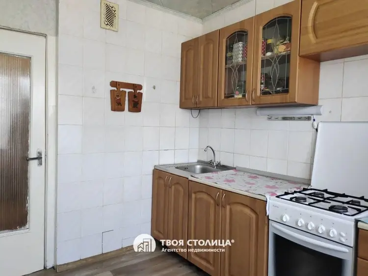 Просторная кухня 9 м² с кладовкой рядом — всё необходимое всегда под рукой, при этом кухня остаётся свободной и функциональной, на полу в кухне практичный линолеум.