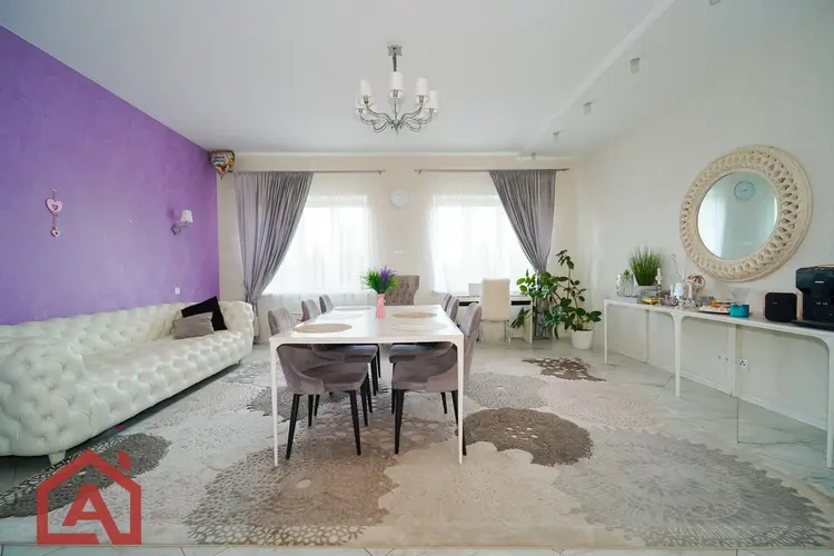 На первом этаже: просторная кухня, совмещённая с гостиной, отдельная комната и санузел. Полы с подогревом обеспечивают комфорт в любое время года. Кухня полностью укомплектована современной бытовой техникой и готова к использованию.