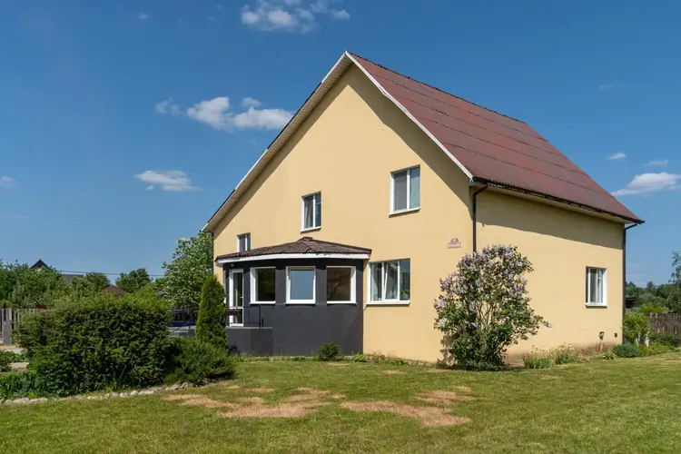 Продается прекрасный двухэтажный дом в 3 км от Минска с баней и благоустроенной беседкой. Отличное место для жизни в спокойной и уютной деревне Богатырево.