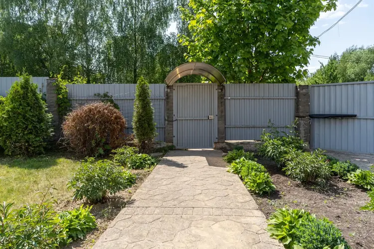 Участок огорожен забором по периметру, что обеспечивает приватность и безопасность.