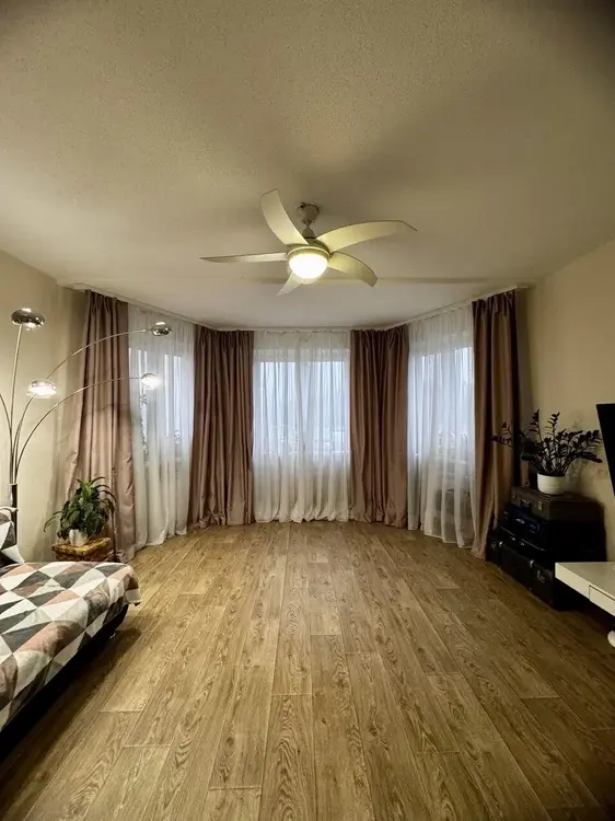 Полностью готова к проживанию. Жилая комната с нишей, окно с эркером (очень много света). Стены оклеены обоями (производство Бельгии). Потолки натяжные. На полу уложен ламинат.