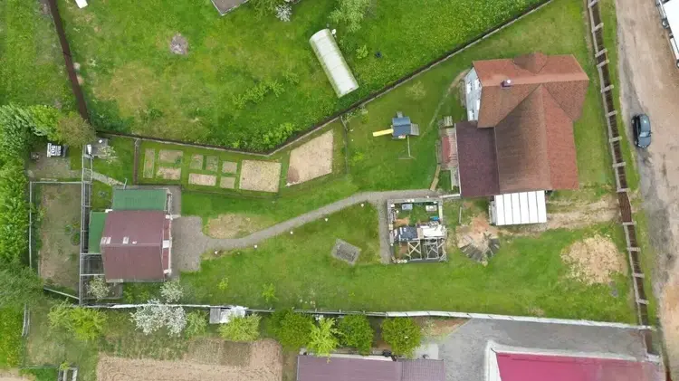 На участке возведен фундамент для бани , хоз. постройки: вольер для собаки, добротная детская площадка, огороженное место под огород, установлена декоративная подсветка вдоль дорожек, высажены туи.