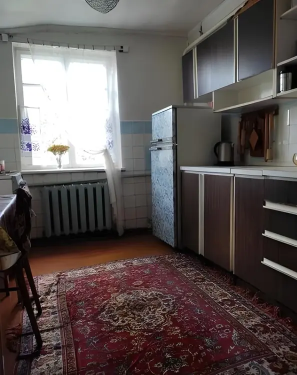 Дом 1975 года постройки, сборно-щитовой, обложенный кирпичом, расположен на участке 0.111 га. Общая площадь дома 107 кв.м, жилая площадь 50 кв.м (четыре жилые комнаты), кухня 9 кв.м, две кладовые, ванная комната, санузел в доме.