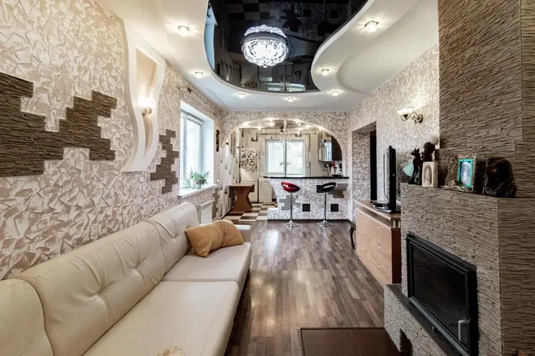 В нём 5 комнат, большая кухня-гостинная, 2 санузла, котельная, тамбур, коридор и просторная застеклённая терраса.
