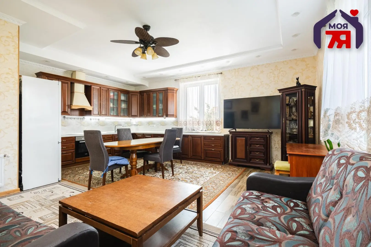 -Просторные светлые комнаты с дизайнерскими обоями и мягкой мебелью. Функциональные гардеробные зоны и роскошные хрустальные светильники. Кухня из натурального дерева со встроенной техникой - идеально для семейных ужинов. Текстиль, шторы, ковры - все подобрано с заботой о комфорте и вкусе.