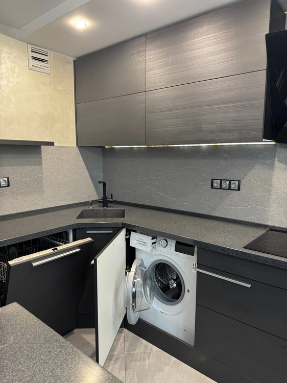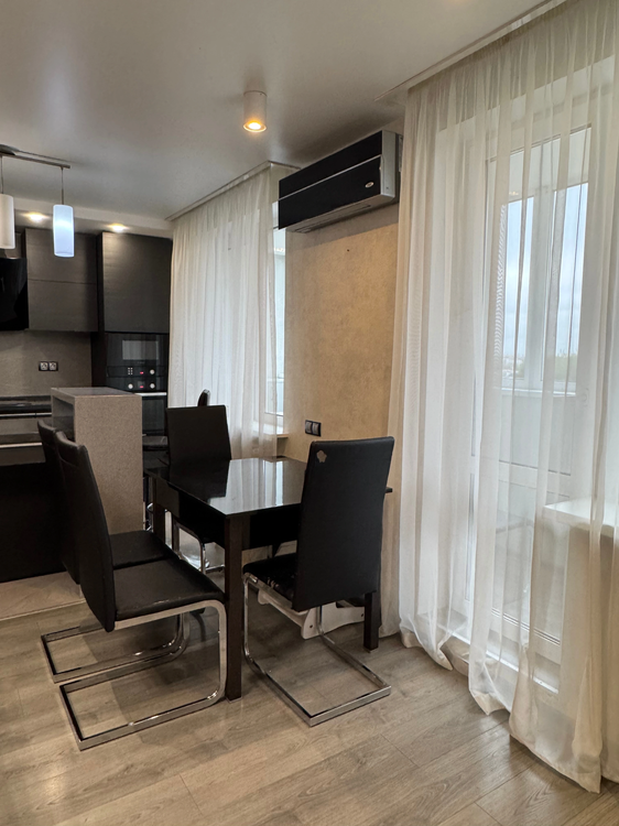 Bosch ( посудомоечная машина, микроволновая печь, духовой шкаф, индукционная плита, вытяжка, стиральная машина), двухкамерный холодильник с лёдогенератором, в санузлах стильная сантехника Roca (Испания). В каждой комнате телевизор (LG, Samsung, Phillips). Балкон и лоджия оборудованы встроенными шкафами и морозильной камерой.