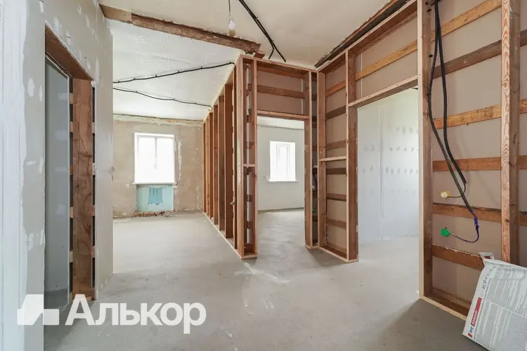 Общая площадь дома составляет 109 м2, жилая – 63 м2, кухня-гостиная – 28 м2. Дом одноуровневый, фундамент – ленточный, стены – в два кирпича. Высота потолков в жилых комнатах – 3 м, установлены каркасные перегородки обшитые гипсокартоном, на полу стяжка с разводкой под «теплый пол. Кровля - шифер, окна – двухкамерные пакеты ПВХ. Водоснабжение – центральное, канализация – местная (приемный септик 3 ЖБ кольца). Отопление – двухконтурный газовый котел, газ введен в дом. Проведена оптоволоконная линия связи и интернета.