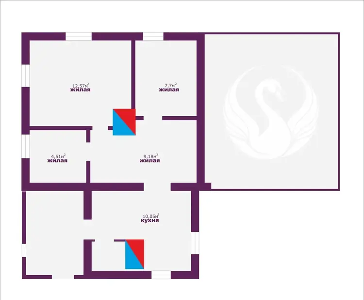 - Общая площадь - 51 кв.м, жилая площадь - 34 кв.м, площадь кухни - 10 кв.м.