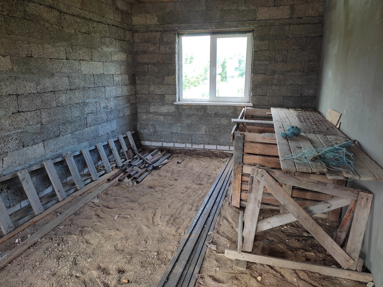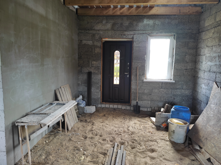 · Стены: Тёплые и дышащие блоки «Арболит» толщиной 300 мм. Сделан кирпичный цоколь (2 ряда) с выпуском проволоки для будущей отделки кирпичом.
