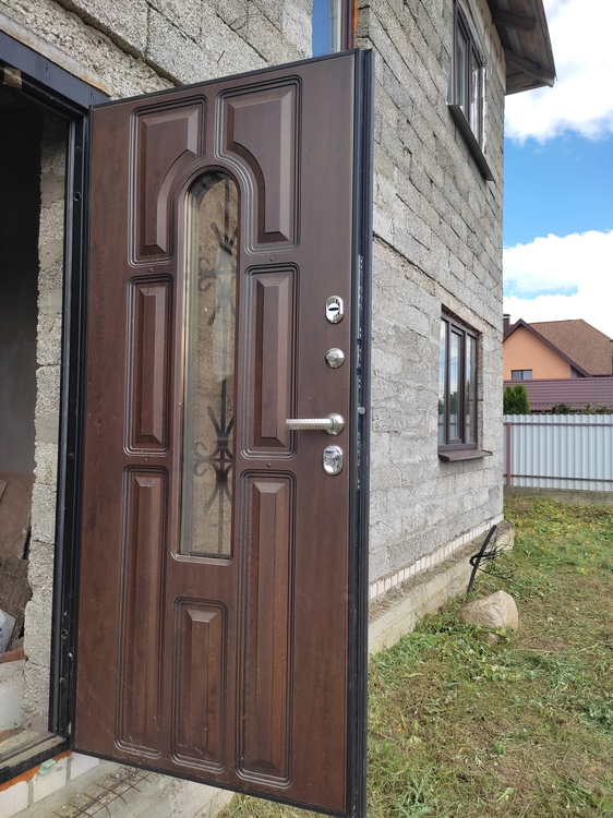 · Входная — металлическая, модель «Металюкс». Примечание: фасадная панель выцвела на солнце, возможна замена на МДФ-панель (вариант уточнён).