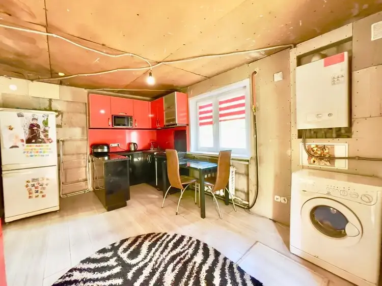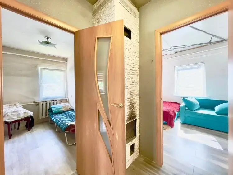 Дом бревенчатый, с блочной пристройкой, разделен на две половины, с отдельными входами, в одной половине дома установлен двухконтурный котёл, разведено отопление, сделан совмещенный санузел. Во всем доме установлены окна ПВХ.