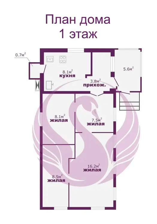 - В доме 4 комнаты площадью 16,2 м2; 8,2 м2; 7,5 м2, 8,1 м2, которые вы сможете обустроить по своим предпочтениям.
