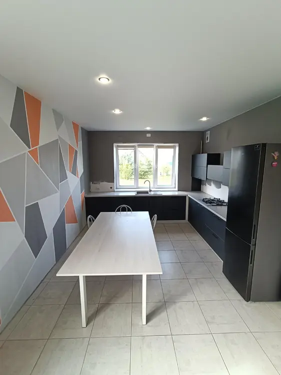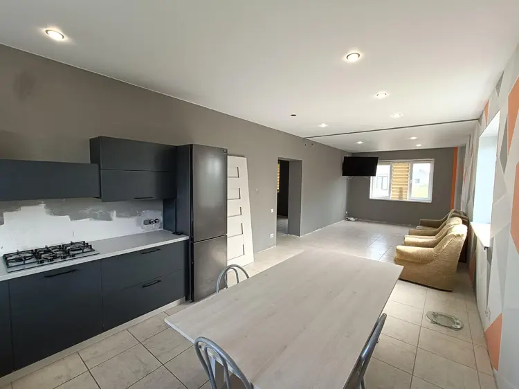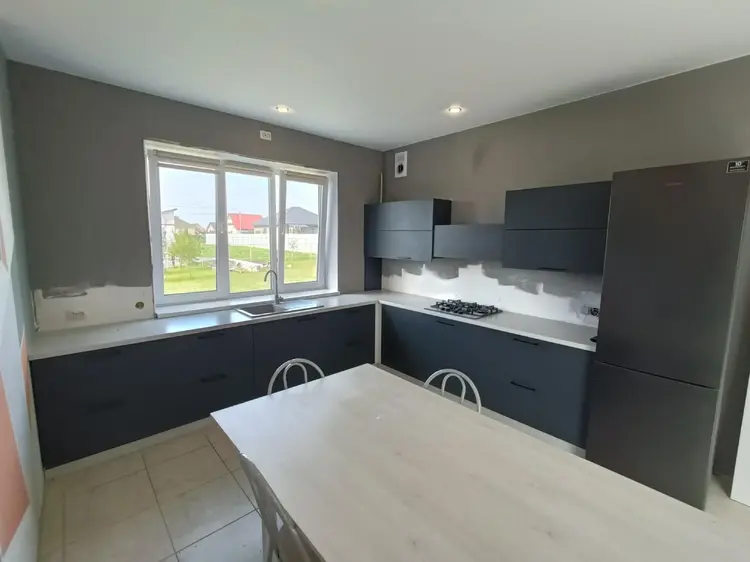 Продается новый современный дом с хорошо продуманной, ориентированной на максимальное удобство планировкой. В проекте предусмотрена просторная гостино-кухонная зона (38,8 м2), три спальных комнаты (15,3; 16,0; 17,4 м2), холл (24,5; 21,3 м2), два санузла: на первом и втором уровнях (5,0; 6,5 м2), а также отдельная топочная (6,5 м2) через конторую можно выйти на улицу и попасть в гараж. Выход на лоджию организован из холла на втором этаже.