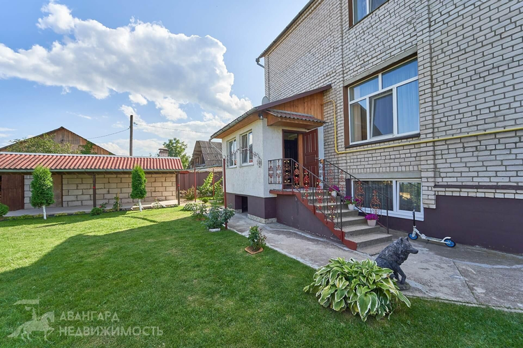 Просторный жилой дом по улице Песчаная находится в центре города Борисов. Общая площадь по СНБ 214.3 м2, возведен из качественных строительных материалов. Стены из кирпича, всегда комфортный климат в доме. Фундамент железобетонные плиты. Крыша утеплена, покрыта шифером. Установлены двухкамерные пластиковые стеклопакеты, что дает хорошую звуко и теплоизоляцию помещению. В доме есть четыре раздельные жилые комнаты, это значит что дом отлично подходит для большой семьи, особенно с разнополыми детьми, у каждого будет своя отдельная комната. На первом этаже две большие раздельные комнаты 23.8 м2 и 18.2 м2, просторная кухня 18.2 м2, где достаточно место для готовки и сбора семьей за обеденным столом. Раздельный санузел 3.9 м2, облицован плиткой. На второй этаж ведет лестница, широкая с удобным маршем. На 2-ом этаже находится еще две уютные и светлые комнаты 18.3 м2 и 18.2 м2, гардероби просторный холл 28.1м2, где есть рабочее место с библиотекой и зона отдыха для просмотра телевизора. Пространство внутри дома наполнено естественным светов за счёт большого количества окон. В доме есть цокольный этаж (подвал) для хранения, там же находится топочная, гараж, спортзал.