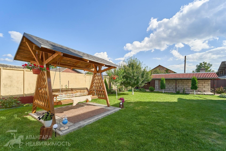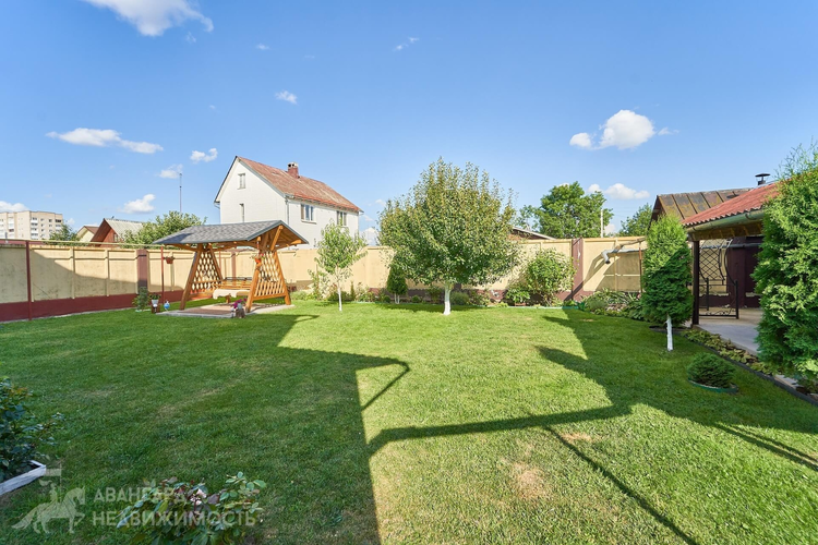 Дом расположен на просторном, ровном, ухоженном участке с ландшафтным дизайном (уже все есть: деревья, кусты и цветы) огороженный высоким забором железобетонным на бетонных столбах, высота забора это безопасность и ваш уют, уединение от соседей. На участке есть несколько мест отдыха, можно уединиться под навесом, можно покачаться на качеле, либо организовать пикник в зоне барбекю. Участок площадью 6.48 соток. Также на участке имеется баня. Несколько хоз. построек, где можно организовать мастерскую, либо складское помещение. Есть парковочное место для машины, также достаточно мест для парковки возле дома.