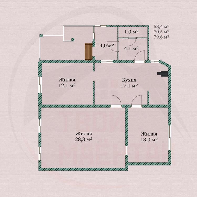 В доме есть самые важные удобства: ванна, туалет, газовое отопление, местная канализация. Общая площадь 70,5 кв.м.! Три просторные изолированные комнаты площадью 53 кв.м., кухня 17 кв. м.